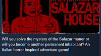 The Horror of Salazar House is out on steam! Of you got it first on itchio, your steam key should now be available on the downloads page. Please leave a review on Steam, it helps out a lot! The itch v...